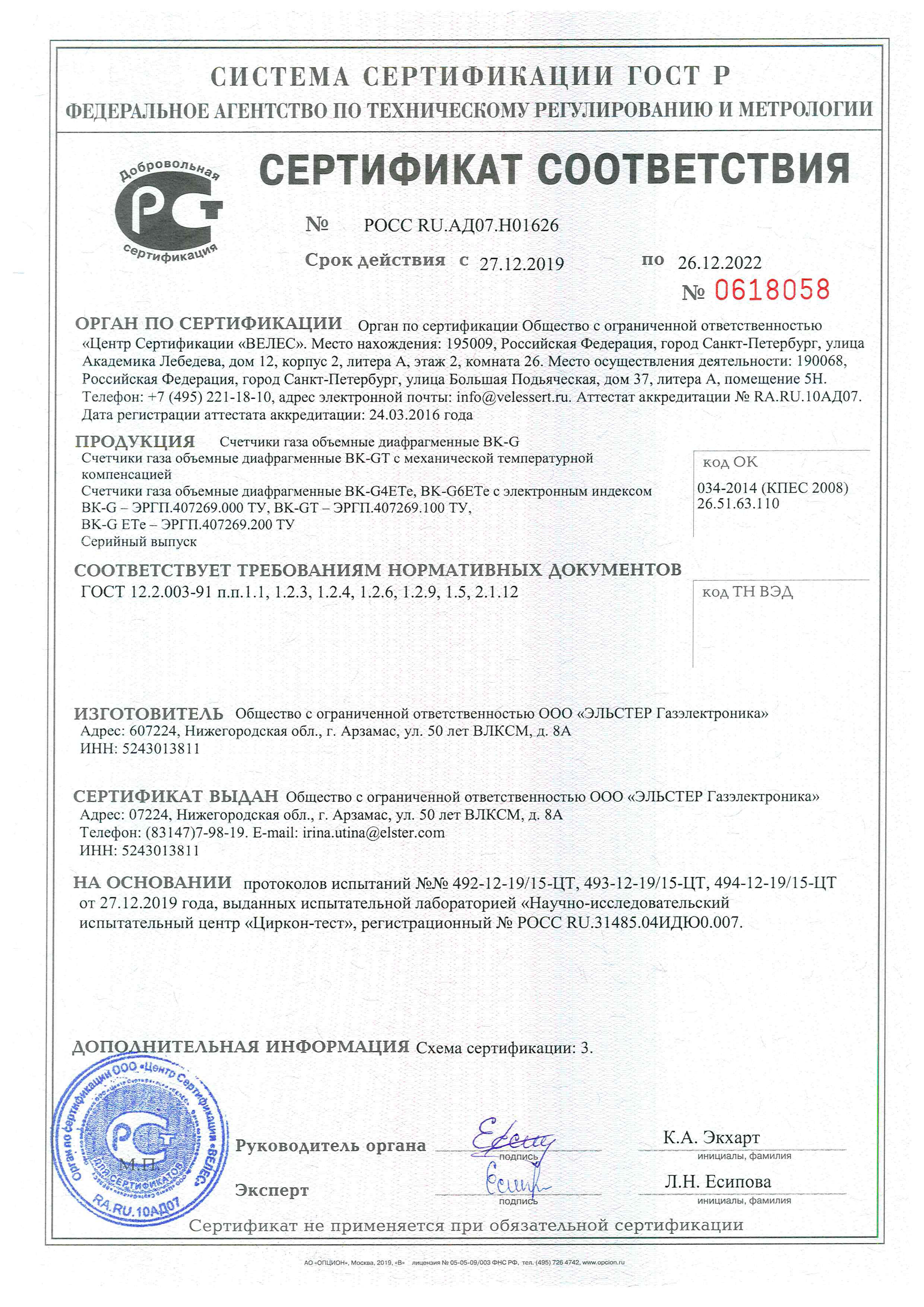 На все счетчики газа распространяется гарантия завода-изготовителя.